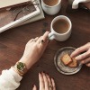 ふかーいブルーの文字盤もベルトもピンクゴールドの金属部分もふっくらしたガラス面もチラチラと動いてるオープン面と裏の機械がチクタク動いてるとこも可愛く全部大好きになりました。会った人から誉められることも