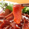 延縄漁法で釣ったまぐろと、一本釣り漁法で釣ったかつおを特製タレに漬け込んだ、2種類の「うまい漬け」をご紹介。