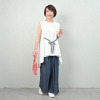 ウエスト脇部分にライン入りのニットテープを配し、デザインアクセントをプラス。