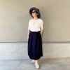 前後にタックを、ウエスト後部にギャザーをあしらい、ヒップ周りにゆとりを持たせました。