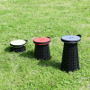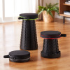 まるでアコーディオンのように、開いたり閉じたり、パッと出してパパッとしまえる、高さ可変式の折りたたみスツールです。