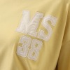 胸元のロゴ刺しゅうは、微光沢感があるバックサテンをアルファベットと数字の形にカットし、刺しゅうで留め付けるという、非常に凝ったつくりを採用。