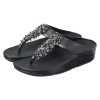 マルチトーンのクリスタル調ビーズで形成した、光沢感のあるフリンジをフロントに散りばめました。