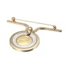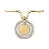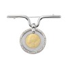 コインの周りにキラキラと輝くビジュウをぐるりとあしらい、ヴィンテージ感あふれるブローチに仕立てました。