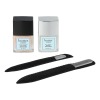 チェコ製のガラスネイルファイルは、表面をレーザーで細かくエッチングしており、爪を整えながら、エッジをなめらかにし、欠けや二枚爪を防ぐのに役立ちます。