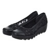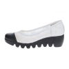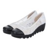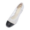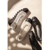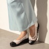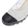 チュール素材と日本製レザーを用いてトゥキャップ風に切り替えたきれいめデザイン。
