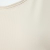 デコルテを美しく見せる広めのラウンドネックですが、アウターからのぞきにくいため、さまざなアウターに対応。