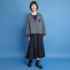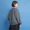 襟ぐりは、ライン入りのリブ素材を使用したチルデンセーター風デザイン。