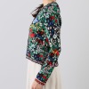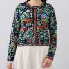 アクリルをベースに、レーヨンとウールをミックスした軽やかな糸を用い、ジャガード編みで仕立てたカーディガンです。