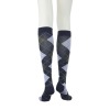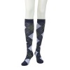 140デニールの段階式着圧をほどこした綿混ハイソックスのブラックと、アーガイル柄またはドット柄のハイソックスを組み合わせた2足セットでお届けします。