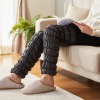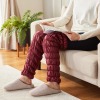 ダウンの布団に入っているかの様な暖かさで気に入りました!膝の手術をしてから冬になると膝の冷えに悩まされていましたが身長の低い私には足首から膝もすっぽり太もものかならり上までくるので、とても暖かく膝の冷えも感じません。何故か足が暖まると上半身まで暖かく感じます。家で素足に履いていますがずり落ちる事も無く、ストレスも無くとても良い商品だと思います。ちなみに私の身長は151cm程度で足は太くは無いと思います。