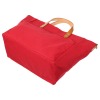 偶然見たテレビで、購入はないなぁと思って見ていたのですが…軽くて丈夫そう色も素敵なかなかないかもと思えてきて…実際手元に届くと職人技がきいていて、布バックでも高級感がある。赤もワンポイントになる好きな色でした。