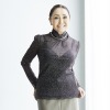 2枚仕立ての襟は前中心と後部にシャーリングを入れたデザイン。