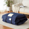 お手持ちのおふとんを縦にたたんで本品の中心に置き、両サイドの生地を内側にたたみ、2つ折りや3つ折りにしてバックルで留めれば、1人で簡単に掛けふとんが収納できます。