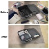 購入してすぐ、義母が亡くなり、急遽飛行機で向かうことに。時間がある時は、事前に宅急便で送っていましたが、今回亡くなった翌日午前中には納棺ということで持って行かなければなりません。夫の喪服はハンガー付きで、私と息子の喪服はハンガーを外して小物や靴とともに入れました。機内に持ち込める割には結構入り、その他の着替えなどもバッグに入れてこのケースの上に固定したので、たくさん持った割に楽に運べました。荷物預けないで済んだので、さっと空港からでて向かうことができました。買って本当に良かったです!