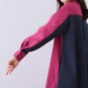 でも届いた品物を見たら、シャカシャカする生地のシャツワンピースでしたが、(私的には…)色も割と落ち着いたピンク色で、ネイビーとのコントラストがとても良いと思います。