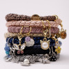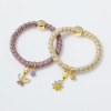 美しいモティーフチャームが付いており、ブレスレットとしてはもちろん、ヘアゴムとしても使える便利なアイテム。