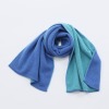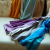 肌触りも良く、マスタードの色は特に思っていた通りで、とても気に入りました。ブルーの方はもう少し明るい色味かと思っていましたが、まぁ気に入りました。だだ、あと10センチ長さが有れば、アレンジして使用できるのでは?と思いました。でも、お値段を考えると贅沢は言えないですね。
