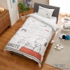 <西川>より、ピーナッツのコミックを切り取ったデザインの、掛けふとんカバーとピローケースのセットです。