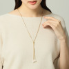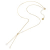 イエローゴールドにして正解でした。チェーンと先端の真珠がとってもマッチし豪華に感じられ、無地の洋服には、凄く見栄えがし、またチエーンがスライト式なので