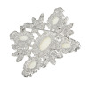 オーバルシェイプのパールビジュウをバランス良くあしらい、キラキラとした輝きを放つビジュウを全面にちりばめたブローチです。