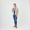 光沢感が美しくふっくらとした風合いのカシミヤを100%使用。さっと巻くだけで装いのアクセントに。