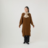 マフラーの端を通し穴に通すだけで、おしゃれな装いを実現する便利な一枚。