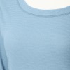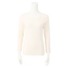 伸縮性が身体の動きにやさしくフィットし、もたつきにくく、アウターと合わせやすいつくり。