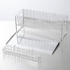 ピカピカでスタイリッシュ!でも失敗したかも。夫婦二人なので 今まで使っていた物は大きすぎて 手ごろな大きさのものに買い替えたいと以前から検討していました。放送を見て ステンレス製は譲れない!置き場所は幅27センチ!グラスもかけられるし まな板も置ける!これだ!と思い購入しましたが グラスは口径によってはかけられない まな板は厚すぎて置けない。何よりも小さすぎたかも。お皿より和食器がメインなのでかごに収めるには工夫が要ります。食器を買い替えるか サブでもう一つ何か必要かな?