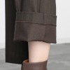 前中心には、見せかけの開きを配したことで、トップスをインした時にもきちんと感を演出します。