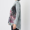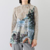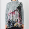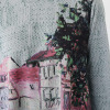 編地柄プリントをベースに建物の柄をデザインした、奥行き感のあるデザイン。