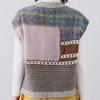 個性的な糸と編地を、パッチワークのように配したローゲージのベストです。