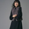 ファーのジレは「マタギか?」とレビューされるものが多いようですがコレは背中は網目のキレイな薄手のセーターで、前だけふんわりファーで丈も短い。着膨れなく暖かでやはり他にない特別なかわいさです。