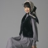 前身頃になめらかでソフトな肌触りのエコファーを使用し、後ろ身頃をアクリルニットで切り替えたデザイン。
