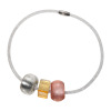 ゴールドカラーのスクエアパーツ、シルバーカラーのラウンドパーツ、ローズピンクカラーのラウンドパーツと、3つのレジンビーズを組み合わせました。