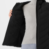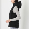 ダウン入り生地をベースに用いた暖かなフードベストです。