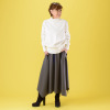 素材の落ち感によりドレープが生まれ、ハンカチーフヘムがフェミニンに揺れ動きます。