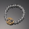 右巻きと左巻きの天然水晶の丸玉を一対配し、周囲にも天然水晶を連ねたイラスティックブレスレットです。
