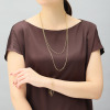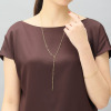 たっぷりとした長さのボックスチェーンネックレスは被りで着用でき、どのコマにも丸カンを掛けられるため、Y字アレンジも楽しめます。