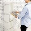 洗濯籠を取り外しできる引き出し形式でセットした、4段のランドリーボックスです。