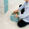 洗濯籠は持ち手付きで、お洗濯後の洗濯物を入れてそのままベランダなどに持ち運んで干すことが可能。