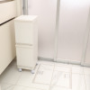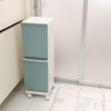 脱衣所は洗濯場でもあるので、洗剤や入浴剤などがどうしても散らかり勝ちなので購入しました。スリムで良かったですが、少し弱い感じもします。奥の方に背の高いボトルを入れてしまうと出すときに引っ掛かり開きにくくなるので、ボトルの背丈を考えて入れないといけないです。