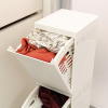 洗濯籠を取り外しできる引き出し形式でセットした、2段のランドリーボックスです。