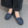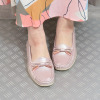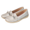 パウダーラメのようなソフトな光沢感がある素材をメインに使用した、エレガントなローファーシューズです。