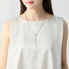 お好みの箇所で留めて長さを調節したり、留め具を前にしてY字にしたりとさまざまなアレンジをお楽しみいただけます。