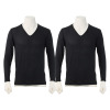 襟元は、ビジネスシーンでも使用しやすいVネックに設定。