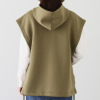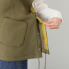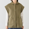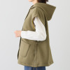 脇はドットボタンで留めた仕様で、さらにアームホール部分にドローストリングを配しており、アレンジを楽しめます。