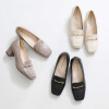 適度な高さのチャンキーヒールで、長時間の歩行にもおすすめ。