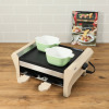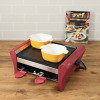 本体上段にセットしたプレートでお好みの食材を焼き、下段にセットしたミニパンでチーズをとろ〜り溶かして、食材にかけて食べるだけ。