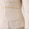 前身頃のパッチポケットには、当ブランド特製のラインストーンを手付けした、ハンドクラフトブレードをあしらい華やかさをプラス。